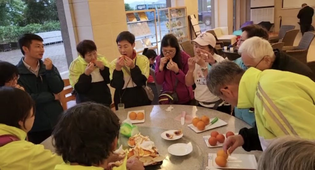 第三天來到展翔農塲,品嚐過有機午餐後開始參觀,乘車30分鐘,到達種植和橙基地,但横風橫雨,什麼也看不見,只好打道回府,氣溫也下降,大家添衣後又再出發,看了苗圃種植,明白到一棵小種子,經過四至八年悉心栽培才能長出我們食用的橙,真的得來不易。隨後又到了蚯蚓培植場,豬場⋯等。莊主李先生更透露這一連串生態鏈都是為了種一個好橙。天還下着大雨,早點回住宿處,大家化身試橙專家,因莊主從外國引入各種紅橙,讓大家試試味,評評分,你又喜歡哪一款呢?